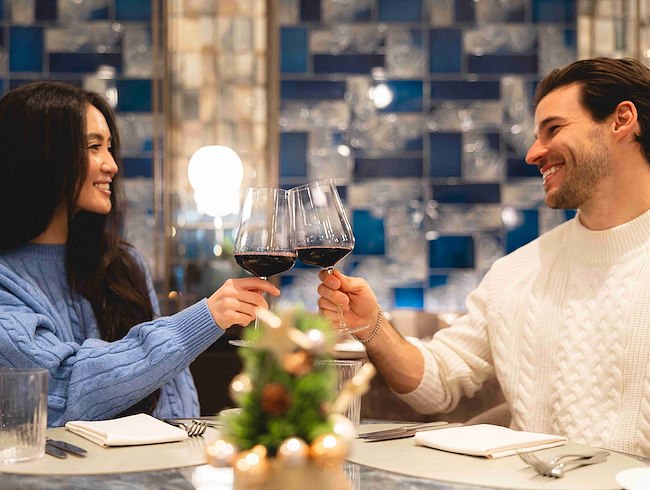 Includes reception with champagne, appetisers and a welcome gift from the kitchen, as well as water and coffee.